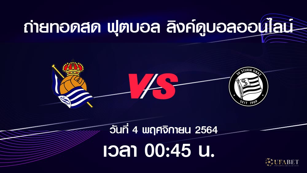 คู่บอลสด ระหว่าง ลิงค์ดูบอลสด 4/11/64 เรอัล โซเซียดาด vs สตวร์มกราซ